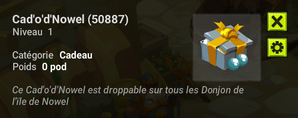 Les Cad'o'd'Nowel sont droppables sur le Boss du Donjon du Papa Nowel (1% de taux). Les cadeaux sont échangeables entre vos personnages.
