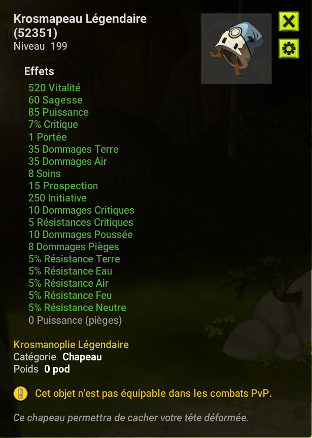 - Panoplie complète (Masque, Cape, Ceinture, Amulette, Bottes)